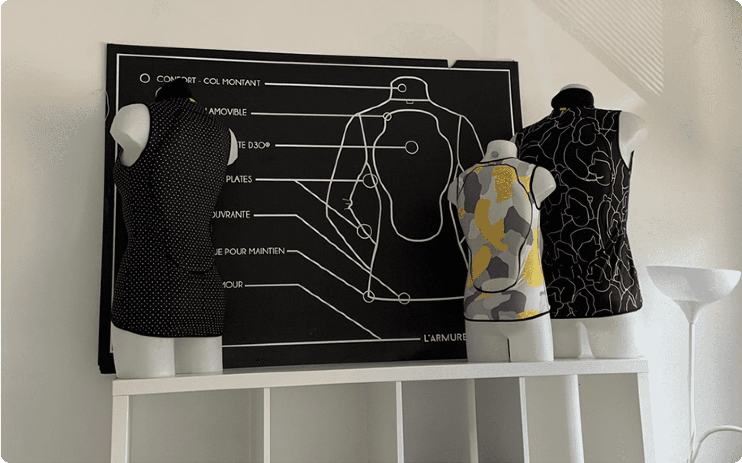 La créatrice Sophie Hallier, passionnée de sports extrêmes en pleine nature, souhaite profiter de ses activités sans compromettre sa sécurité en cas de chute. Forte de plusieurs années d'expérience dans la mode (LVMH, Kenzo, Hermès, Dim), elle lance sa propre ligne de vêtements, L’Armure Française.